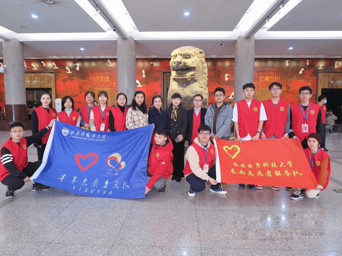 仪式结束后,公司春雨志愿者服务队与馆长侯宁彬等合影留念。李维嘉同西安外国语大学志愿者服务队指导教师曲晶晶、陕历博志愿组工作人员高英喆交流志愿服务工作经验,对新一年志愿服务工作计划要求提出意见,同时期待西电与西外两校志愿者们能继续加强联系、共同合作,为国家社会贡献青春力量。