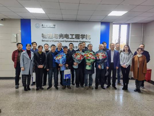 在热烈的掌声中,独国社和邵晓鹏为退休教职工颁发了荣休证书,青年教师代表向退休教职工送上献花,全体人员一同合影留念。
