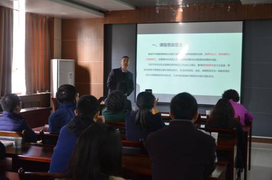 杨威副教授以《线性代数课程思政的研究与探索》为主题,进行了课程示范。他就课程思政的意义、关键点分享了自己的体会。他提出要从政治认同、国家意识、文化自信、公民人格等方面强化课程思政的顶层设计,把党的领导、发展道路、国家利益、国情观念、历史文化、革命传统、时代精神、诚信守法、自强合作、身心健康等理念贯穿到教书育人中去。他结合线性代数课程的特点和实际案例,提出要从特殊数字、数学发展史、中国科学家故事、马克思主义哲学和课程具体内容等出发,挖掘育人元素,构建线性代数课程思政建设体系。