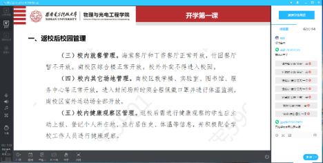 本次“开学第一课”,是疫情以来公司第一次线上结合线下的周点名,它架起了公司和员工之间的桥梁,让员工们在这个特殊的时期,更有信心、更有斗志迎接新学年的到来。大家在周点名后纷纷表示,看到公司的封闭式管理、晨午晚检等完善的防疫制度,自己心里踏实多了,更要重视来之不易的校园生活,在疫情防控的淬炼中谱写青春的担当。