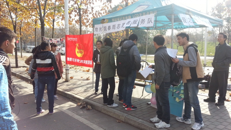 募捐现场,志愿者们向往来的同学分发宣传单,介绍杨飞同学的病情及家庭现状。杨飞的感人事迹吸引了许多的同学前来观看并献爱心。活动从早上10点持续到晚上6点,共募得3014元的爱心捐款。