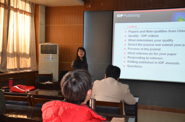 12月11日下午3时,在西大楼III-412,熊春博士为太阳成集团tyc33455cc的师生作了题为“如何在IOP期刊上发表高水平论文的”(How toget published in IOP journals)报告。
