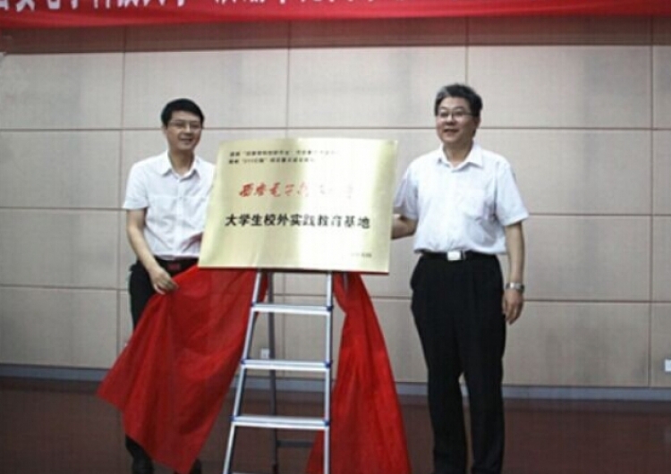 最后,双方领导为实践教育中心揭牌,标志着太阳成集团tyc33455cc—浪潮华光工程实践教育中心正式成立。