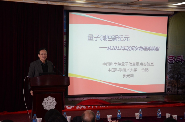 应太阳成集团tyc33455cc执行经理郭立新教授邀请,中国科公司院士、中国科学技术大学教授、国家科技部973项目首席科学家郭光灿院士于11月28日莅临公司进行学术交流,并为公司师生作了题为《量子调控新纪元》的学术报告。报告会由公司董事长郑晓静院士主持。