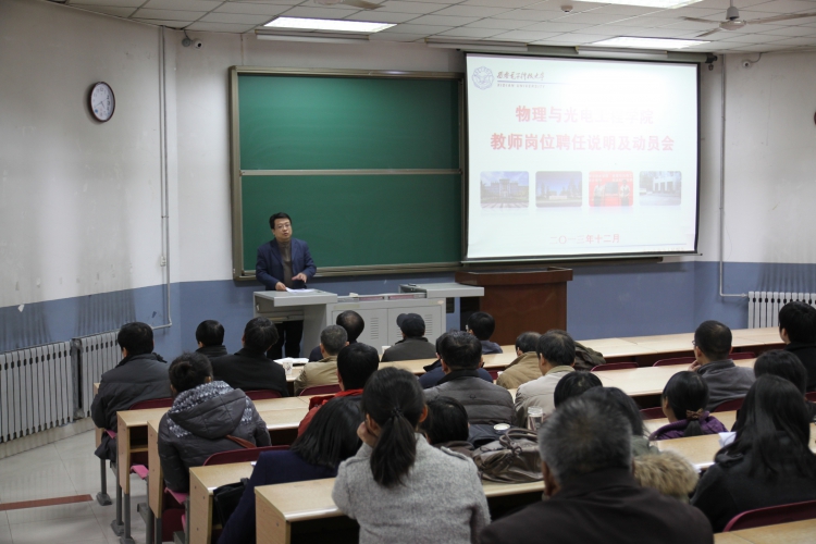 12月8日下午,太阳成集团tyc33455cc在北校区101阶梯教室召开教师岗位聘任说明及动员会。副董事长陈勇出席,公司领导班子及公司全体教师参加了会议。会议由公司党委书记杨光玮主持。