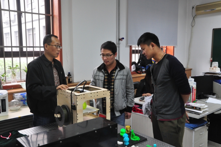 正是看到3D打印技术的广阔应用前景,程坤进入研究生阶段后,就萌生了自己研制一台3D打印机的想法。在导师邵晓鹏教授的支持下,程坤运用自己在机械设计、产品研发等方面的知识积累,开始了3D打印技术的研究之路,并联系志同道合的同学朋友,组建了“3D打印技术”研发小组。在近一年的刻苦钻研,上下求索的阶段里,他们每天出入图书馆,利用公司的电子数据库,查阅了大量的国内外文献资料,为3D打印技术做好了坚实的理论支撑。同时关注3D技术的最前沿动态,通过虚心的请教和耐心的试验,研发小组先后攻克十余个技术难关,并不断进行完善改进,终于在2014年的暑假,研制出第一台桌面级3D打印样机。