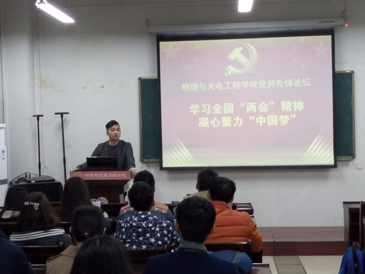 (通讯员:石柳)3月23日晚,物理与光电工程公司党支部组织开展了第72期党员先锋论坛活动。公司本科生14级、15级党支部全部党员、入党积极分子参与了活动。本次活动由14级党支部书记石柳主持。
