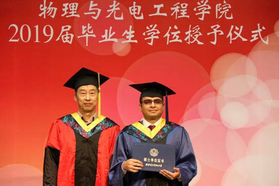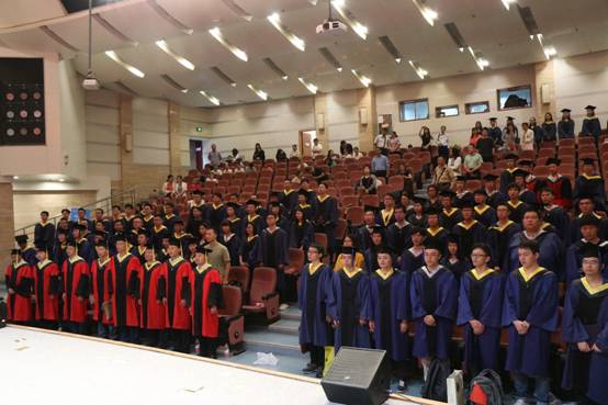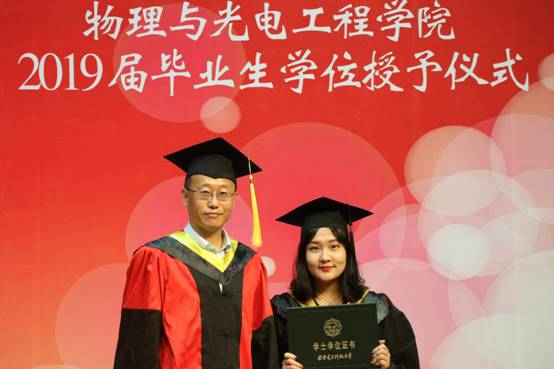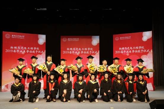 授位仪式开始,由公司独国社老师、邵晓鹏老师、曾晓东老师共同为2019届毕业生颁授学位。毕业生依次登台,鞠躬握手,接受拨正流苏,手持证书与老师亲切合影,为求员工涯画上圆满句点。