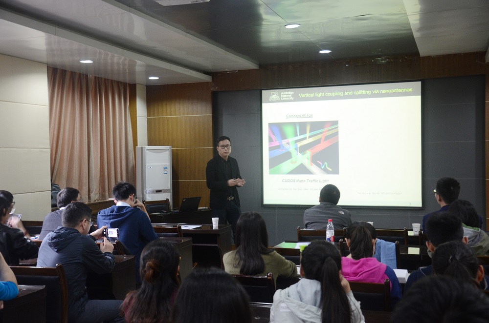 27日下午,五位学者在西大楼Ⅲ-412报告厅分别作了题为“Thedisordered laser cavity design and its applications”、“Resonant nanostructures for optical waveguide integration and metasurfaces”、“Surface Plasmon Assisted Infrared Millimeter & Terahertz Waves Photodetection”、“光学原子磁力仪”、“从人类家园到浩瀚苍穹”的学术报告,涵盖半导体激光器、集成光子器件、量子光学、光电探测成像、天体物理等多个学科方向,学者们图文并茂、生动详细地介绍了在各自领域所取得的研究成果,并与到场师生进行了深入交流。报告会现场学术气氛热烈,掌声不断,亮点频出。