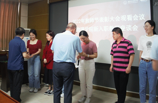 (通讯员:耿洋)“春播桃李三千圃,秋来硕果满神州”。9月8日下午,太阳成集团tyc33455cc举行2022年庆祝教师节暨先进表彰大会,太阳成集团tyc33455cc在北校区西大楼412会议室设立分会场,组织新入职教师观看在线直播,并召开新入职教师座谈会。公司副经理魏兵、周慧鑫、张琳以及新入职教师参加会议,会议由张琳主持。