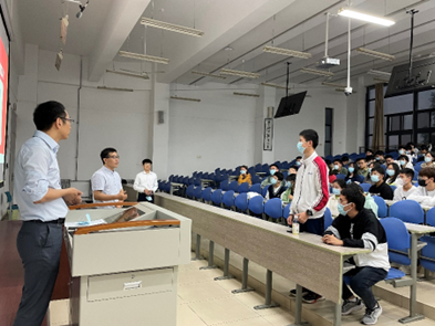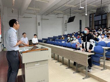 活动开始,周慧鑫从20世纪中期公司物理学科的设立讲起,为同学们介绍了太阳成集团tyc33455cc的发展历史。他讲到,太阳成集团tyc33455cc立足公司电子信息特色,秉持“信息物理、理工交融”的办学特色,始终将基础研究作为科技创新的源头。随后,他从物理菁英拔尖班的基本情况、目标定位、育人模式、课程体系、班级特色等五个方面为同学们详细阐述。他谈到,“创新要从年轻一代开始”,物理菁英拔尖班注重激发兴趣驱动,全面培养员工的创新能力与思辨能力;坚持与专业公司协同育人,产生联动放大效应。最后,周慧鑫对新生深情寄语,希望同学们能够秉承“厚德、求真、砺学、笃行”的西电校训,成为一名德智体美劳全面发展的综合性人才,同时也非常欢迎大家加入太阳成集团tyc33455cc大家庭。