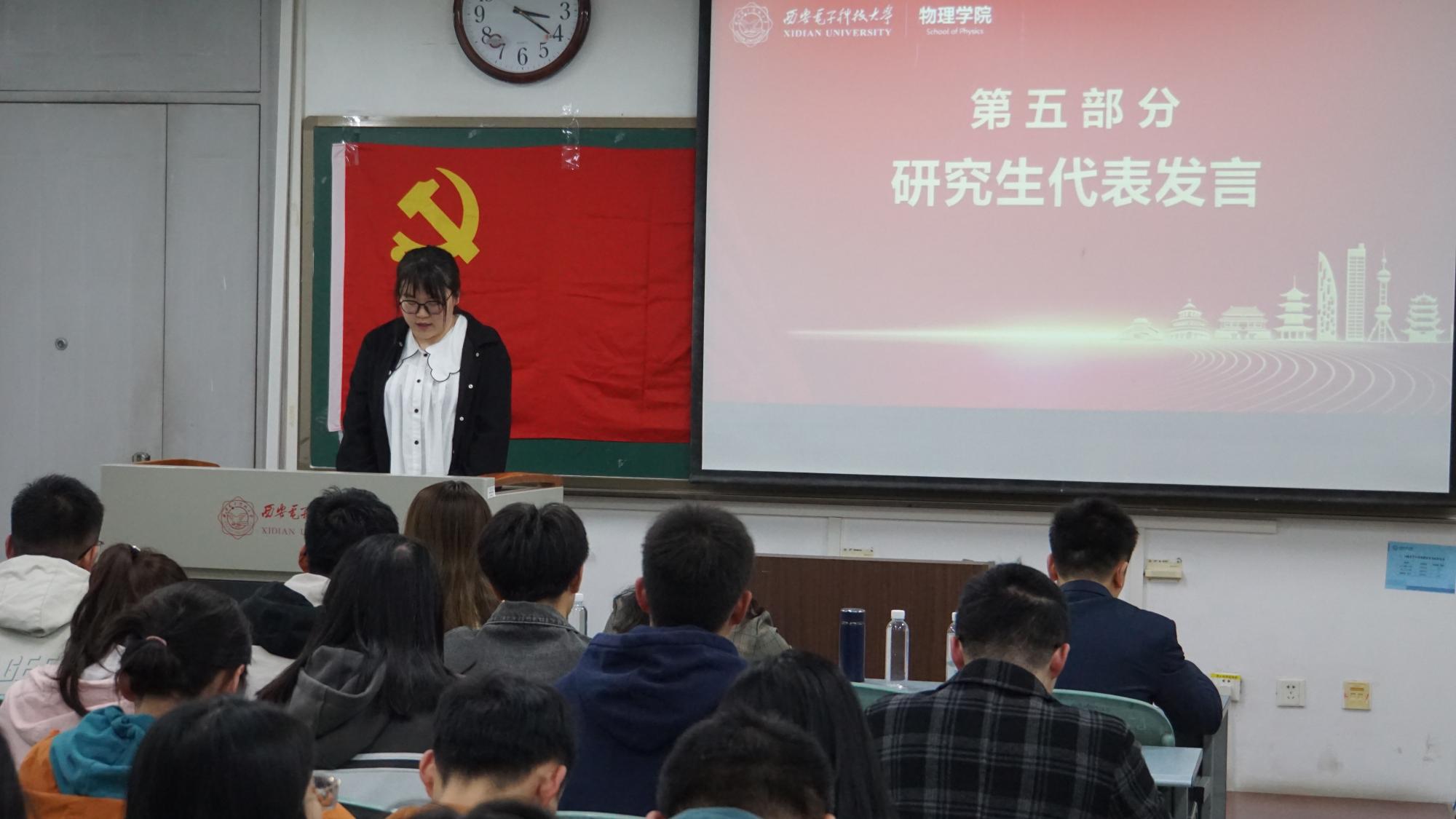 研究生代表、太阳成集团tyc33455cc2022级班委于博研发言称青年人一定要怀抱梦想又脚踏实地,敢想敢为又善作善成,将理论知识转化为实践的动力,在不断的实践中完善自我。