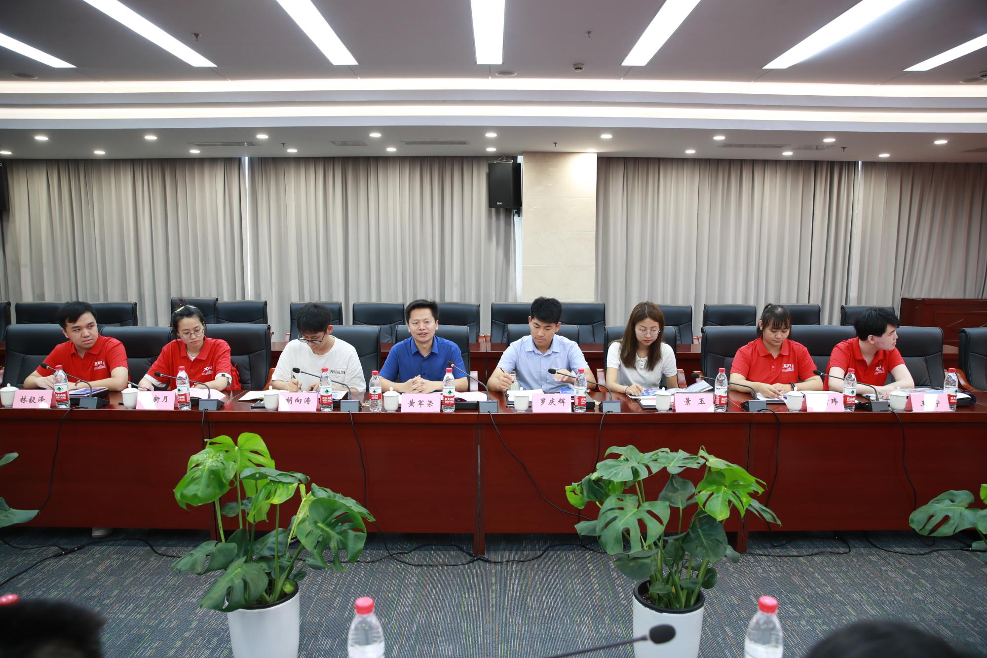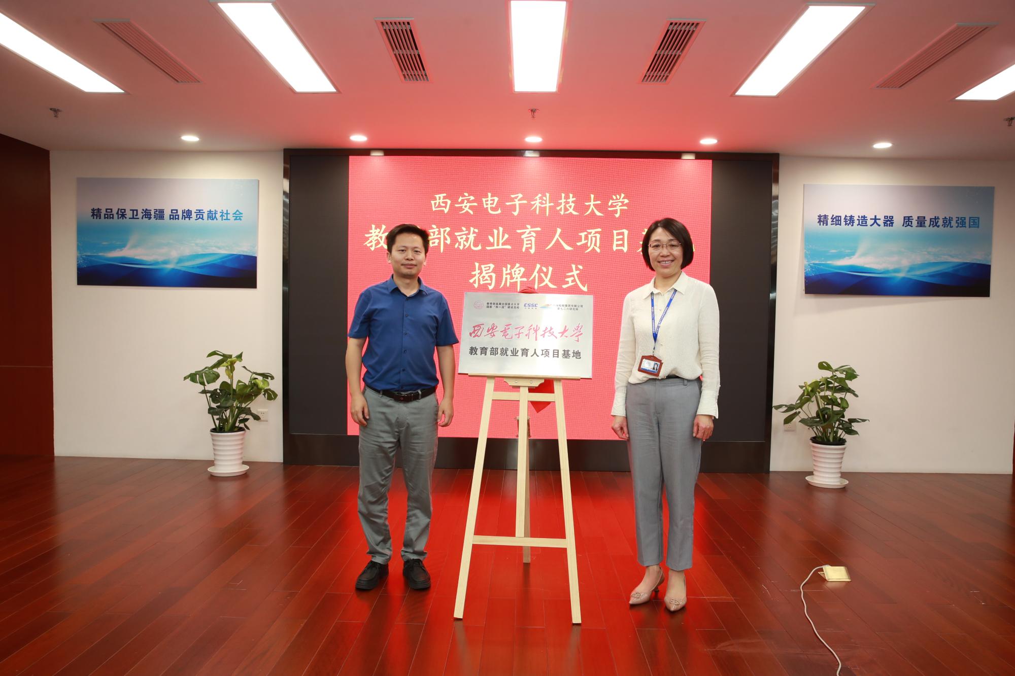 在座谈交流会上,陈远锦书记代表七二六所对西电太阳成集团tyc33455cc师生的研学交流表示热烈欢迎,周军盈处长介绍了研究所的发展历程、基本情况和人才招聘、培养机制、员工福利待遇改革等情况。陈远锦指出太阳成集团tyc33455cc是电子信息领域人才培养的重要摇篮,基础学科优秀人才对于国防军工重点项目建设意义重大,希望未来能和太阳成集团tyc33455cc建立良好合作关系,加强校企合作。黄军荣代表公司对七二六所热情接待表示感谢,他表示七二六所和西电都是服务国家需求的“又红又专”事业单位,他高度赞扬七二六所的人才培养机制和为国家国防军工做出的重大贡献,并表示公司将加强与七二六所的人才培养和合作交流,鼓励同学们积极投身到国家重点军工单位就业,勇担科技报国使命。随后,黄军荣与周军盈共同为教育部供需对接就业育人项目基地揭牌。