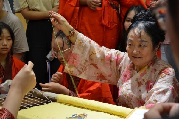 在本次活动中,公司特别邀请到华服非遗项目传承人姜姗秀、赵晁艺为同学们讲解汉服织造过程、带领同学们体验华服手工织造技艺,让同学们在实践过程中提升传统文化素养及对非物质文化遗产的传承保护意识。