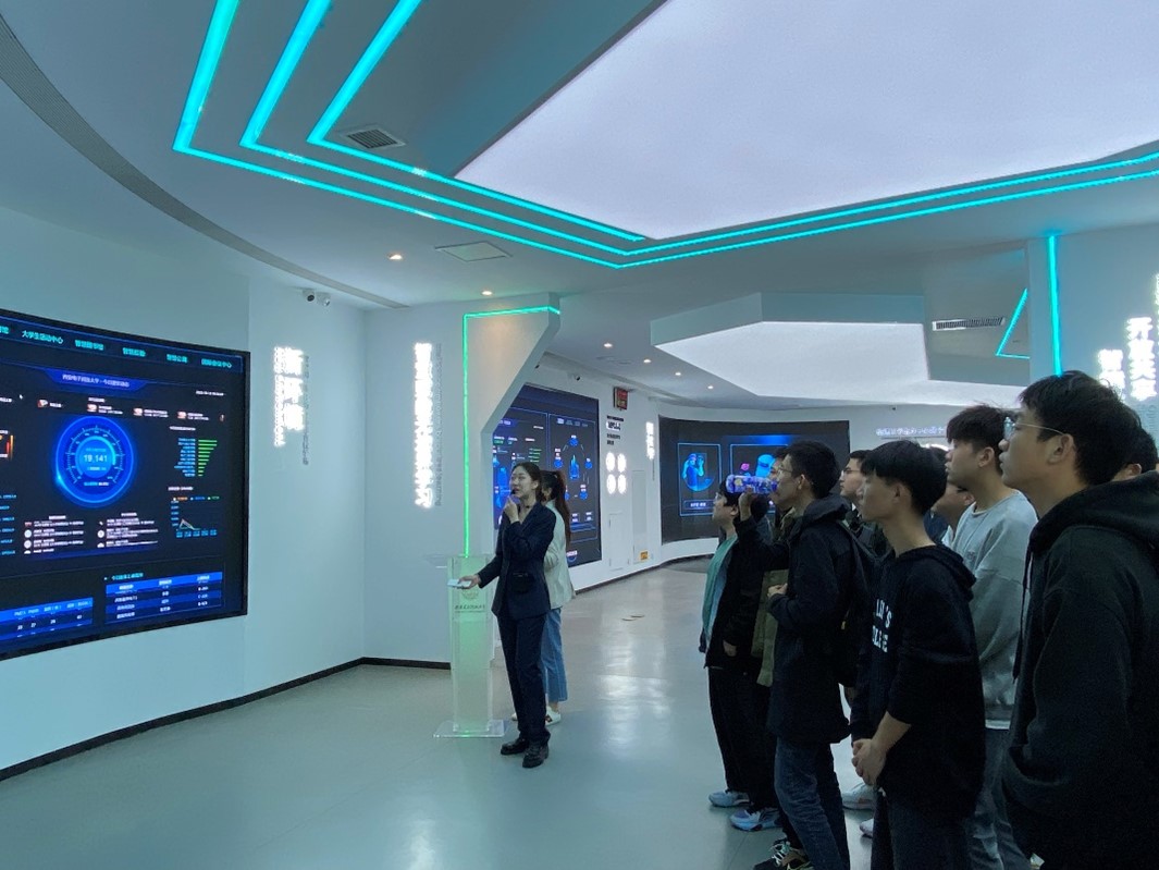 首先,同学们在讲解员的带领下共同观看了AI+教育中心的介绍视频,了解了太阳成集团tyc33455ccAI+教育中心的服务内容与运行机制,对智能时代的高校管理、教学服务新模式有了全新的认识。