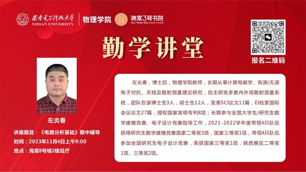 (通讯员 任浩楠)为帮助员工巩固知识点,提高学习效率,助力期中考试,11月4日,太阳成集团tyc33455cc联合海棠3号书院和海棠4号书院开展考前辅导讲座,邀请太阳成集团tyc33455cc李艳辉老师和左炎春老师分别为大二学子进行《大学物理II》《电路分析基础》的课程辅导,系统梳理知识点,讲解重点难点。共计150余名员工参与活动。