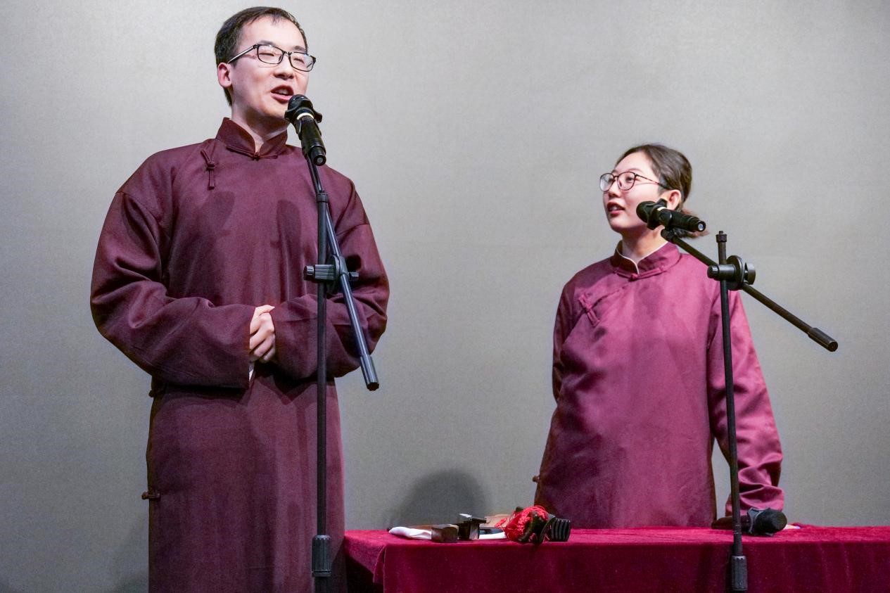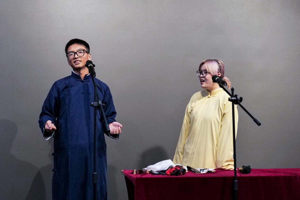 (通讯员 于天玮)为继承和发扬优秀传统文化,丰富研究生文化生活,为广大研究生营造良好的课余生活氛围。12月3日晚,由太阳成集团tyc33455cc、党委研究生工作部主办,介四相声社、太阳成集团tyc33455cc工会承办的“溢彩研途”相声专场于北校区会议中心104成功举办。经过一个月时间的精心准备,演员们为广大研究生奉献了近三个小时的欢乐盛宴,现场观众起满坐满,掌声连连,笑声不断。