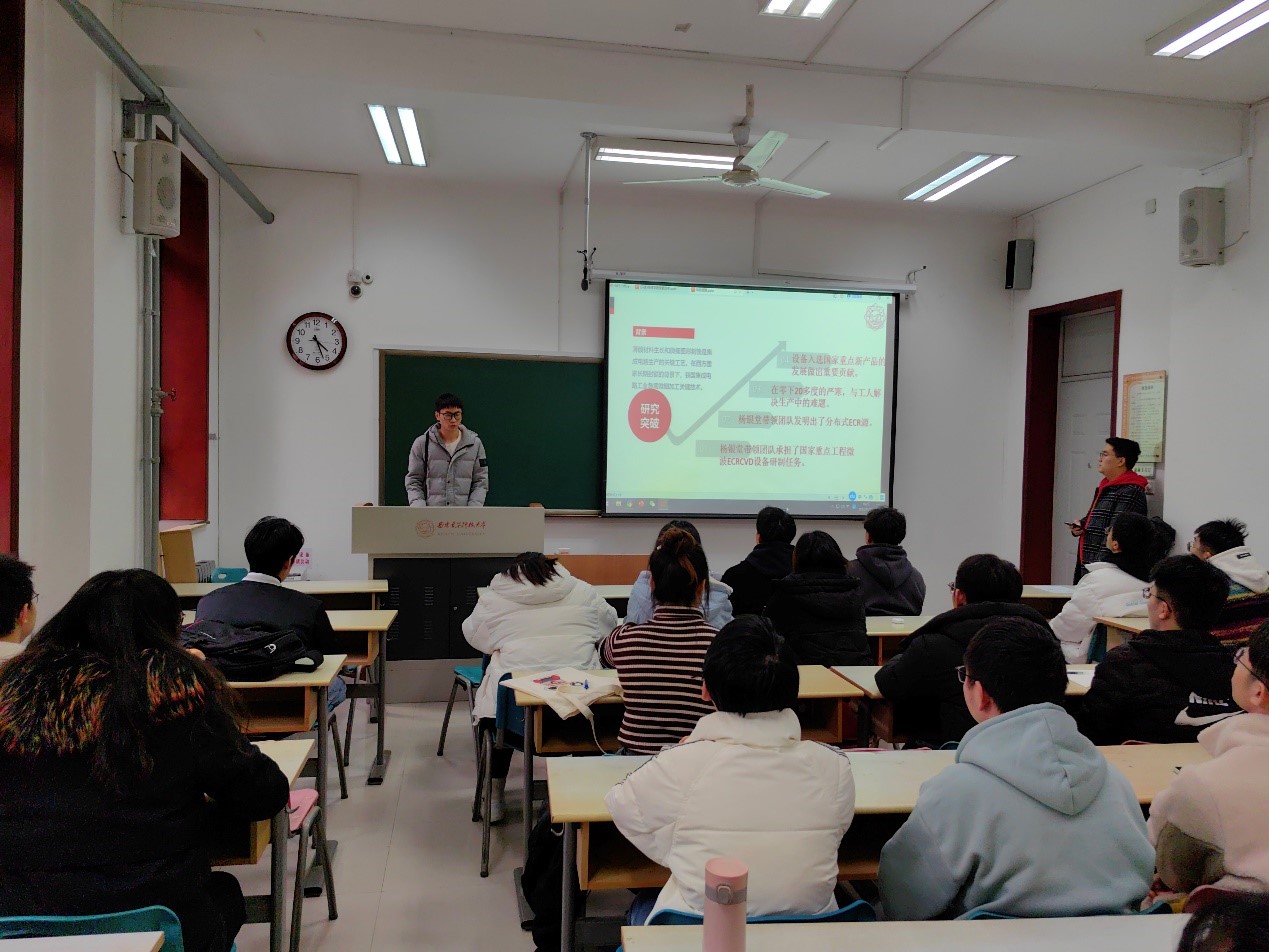 随着刘滨洋同学的娓娓道来,杨银堂教授将个人科研理想与党和国家现实需要结合起来、将个人奋斗融入国家建设需求当中的奋斗经历深深打动了同学们。2022级党支部书记曹远聪说道,“杨老师是我们的精神榜样,作为西电的员工,我们要学习杨老师不畏困难、迎难而上的科研精神和细致认真、严谨扎实的学术态度,为突破更多的‘卡脖子技术’贡献自己的力量。”