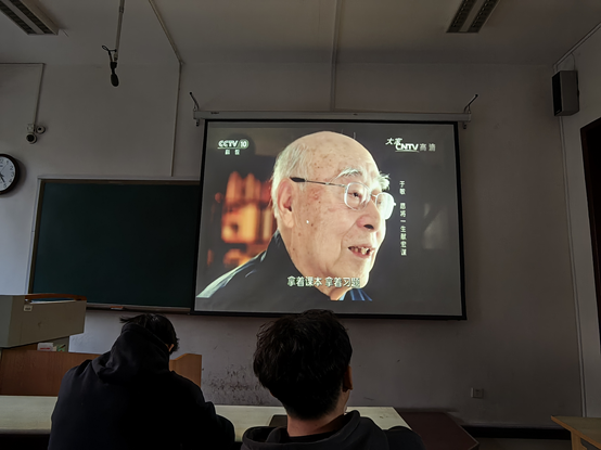 活动的第二个环节是“近代历史中的科学家精神”主题学习。2023级党支部书记高原带领大家学习了《功勋丨纪念“氢弹之父”于敏》专题材料,从1958年“九二四空战”讲起,引出了军事技术自立自强的重要性,回顾了于敏团队与时间赛跑,研制出我国第一颗氢弹,突破帝国主义对我国核威胁、核讹诈,为共和国铸起“核盾牌”的传奇历史。随后大家集体观看了中央电视台《大家:于敏——愿将一生献宏谋》专题纪录片。纪录片讲述了于敏团队在极端困难的物质条件和帝国主义技术围堵的时代背景下,进行理论研究、抢先完成核试验的历史。