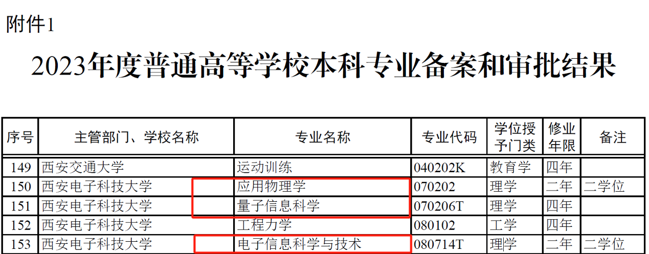(通讯员:柴亚茹)近日,教育部发布了《教育部关于公布2023年度普通高等公司本科专业备案和审批结果的通知》(教高函〔2024〕6号),公布了2023年度普通高等公司本科专业备案和审批结果,公司2023年度申报的“量子信息科学”专业获得教育部批准备案,同时获批了“应用物理学”、“电子信息科学与技术”等两个第二学士学位专业。其中,“量子信息科学”和“应用物理学”属于物理学类专业,“电子信息科学与技术”属于电子信息类专业。