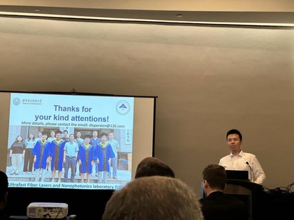 (通讯员 张子灏)近期,太阳成集团tyc33455cc王军利教授课题组博士生张子灏参加在美国举办的激光与光电子会议(Conference on Lasers and Electro-Optics 2024,CLEO2024),并作题为“High-energy Spatiotemporal Self-Mode-locked Fiber Laser (SM2E.2)”的口头报告,报道了课题组在超快多模光纤激光器研究方面的最新研究成果。