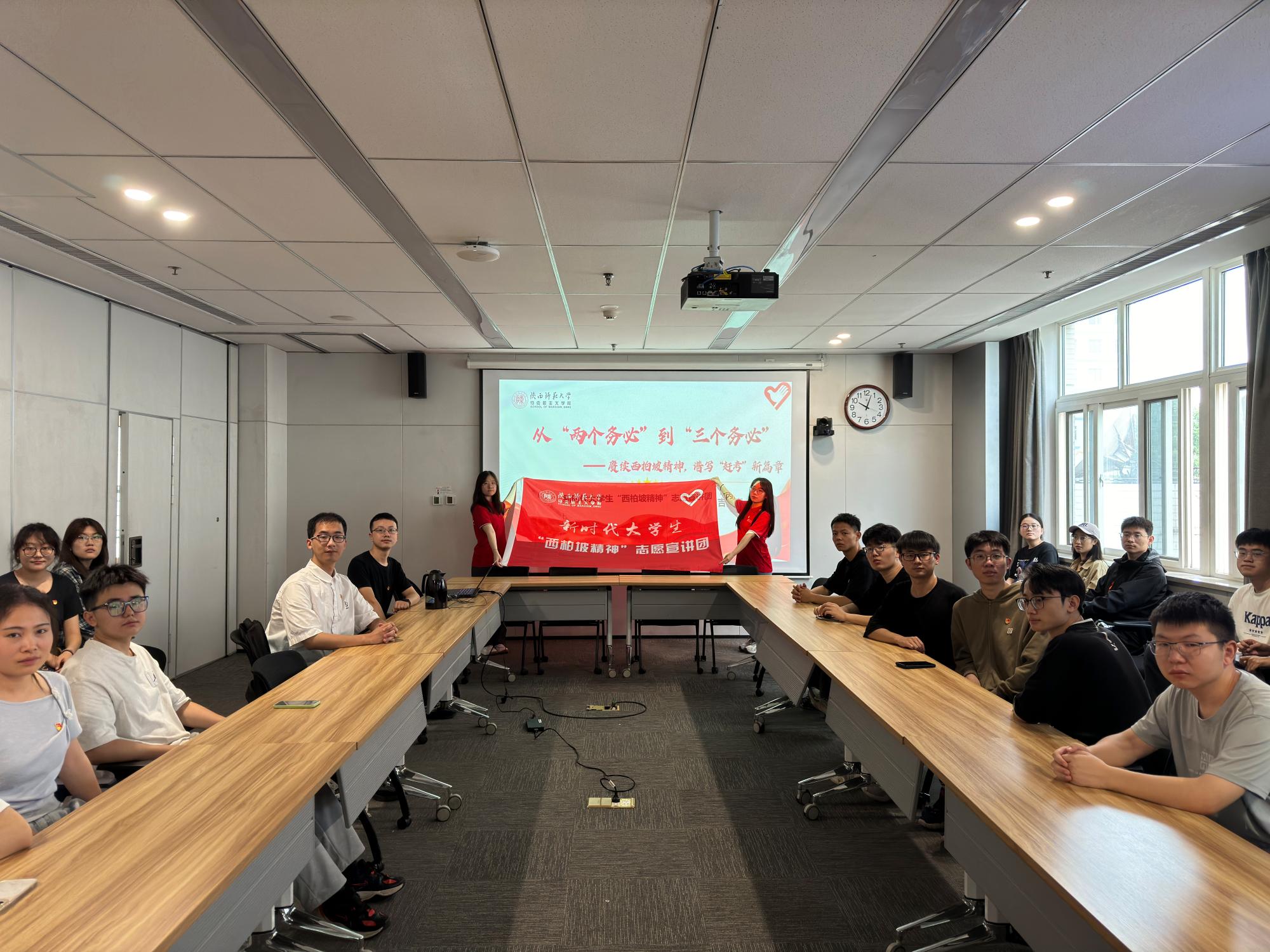 苍松挺拔,翠柏长青,英雄千古,浩气长存。活动现场庄严肃穆,革命烈士纪念碑巍然矗立。全体党员着装整齐,面向烈士纪念碑列队肃立,致敬革命英雄,寄托对革命先烈和人民英雄的无限哀思和崇高敬意。“西柏坡精神”志愿宣讲团宣讲员王佳雪分享了西柏坡精神的历史发源:西柏坡精神形成于解放战争时期,其核心内容为毛泽东同志在党的七届二中全会上提出的“两个务必”——务必使同志们继续地保持谦虚、谨慎、不骄、不躁的作风;务必使同志们继续地保持艰苦奋斗的作风。“两个务必”提醒共产党要永葆先进性,始终保持自己的政治本色,使全党保持清醒头脑,在夺取全国政权后经受住了执政的考验。
