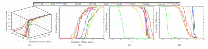 该方法在多个高光谱数据集上均取得了优异性能,特别是在复杂背景下的异常目标检测方面表现突出。