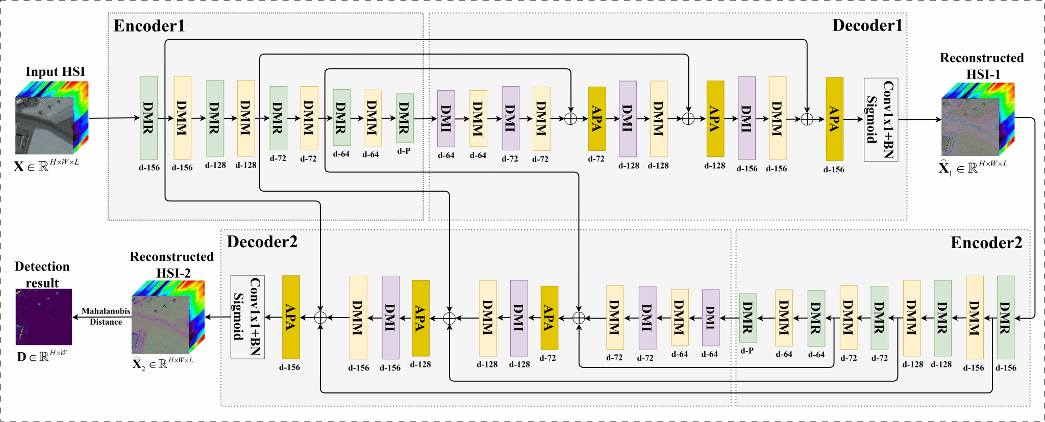 随着遥感技术和光谱成像设备的不断发展,高光谱成像(Hyperspectral Imaging, HSI)在地球观测、资源勘查、农业监测、环境保护等领域中发挥着越来越关键的作用。与传统图像相比,高光谱图像在每个像素上提供了数十甚至数百个连续波段的光谱信息,能够精准反映地物的物理与化学属性。在遥感应用中,高光谱异常检测是一个极具挑战且具有实际价值的研究方向,主要任务是在缺乏先验类别信息或训练样本的情况下,自动识别图像中与背景显著不同的异常目标。然而,高光谱图像的高维特性、强背景干扰、目标异质性等问题,使得异常检测面临特征冗余、语义模糊、背景噪声复杂等多重挑战。如何构建鲁棒的特征表达机制、高效分离背景与异常信息,并提升检测的精度与可靠性,成为该领域研究的核心难题。