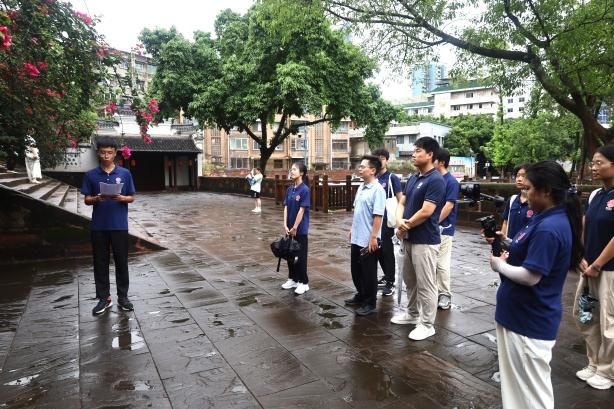 岷江江畔烟雨霏霏,李雨聰同学向实践队分享了王一平、胡昌璧教授革命伉俪的感人事迹,全体队员在江畔缅怀王一平、胡昌璧教授。他说到:“作为新时代老员工,我们站在这里,不仅要缅怀王一平、胡昌璧教授,更要接过他们递来的火把——在各自的专业领域继续深耕,在新时代浪潮中让祖国强大,让这份‘弦歌不辍、薪火相传’的精神,如岷江之水,永远奔涌向前”。黄军荣望着滔滔江水对同学们谆谆嘱托:“希望同学们坚持‘心定意诚修身’,坚定目标不断追逐探索,提升个人主观能动性和综合素质,向两位教授学习,勇担时代赋予的责任,心系国家民族,厚植家国情怀并为之不懈奋进。”