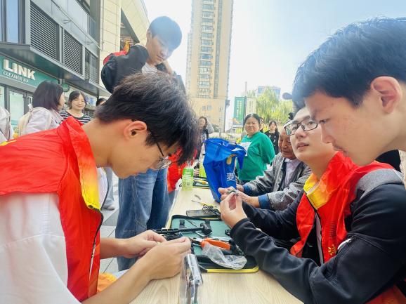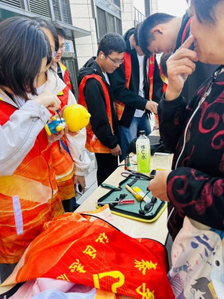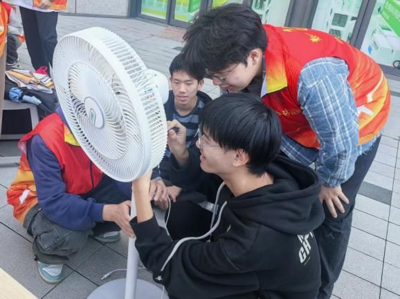 活动筹备阶段,在社区居委会领导及工作人员的协助下,志愿者们迅速进入状态,有条不紊地开展各项准备工作:他们默契配合,高效完成了桌椅摆放、电源连接、维修工具清点等任务,临时服务点很快便搭建完毕,以专业、整洁的面貌迎接每一位前来求助的居民。服务过程中,志愿者们充分发挥专业特长,构建起分工明确、协作高效的服务体系。擅长电路检测的同学化身“故障诊断师”,手持专业仪器对电水壶、电饭煲等小家电进行细致排查,精准定位每一处故障节点;动手能力突出的同学则担当“维修工程师”,娴熟地拆卸螺丝、更换损坏零件,让故障家电恢复“活力”;耐心细致的同学则承担起“知识传播者”的角色,一边记录维修进度,一边结合实际维修案例向居民普及家电保养知识。“热水壶水垢需每月用白醋清理,避免加热不均”“风扇不用时盖好防尘罩,定期给转轴加润滑油”,这些实用的保养技巧让居民们受益匪浅。遇到复杂故障时,志愿者还会围坐讨论,查阅专业资料确认解决方案,在集思广益中攻克维修难题,最终让30余件“罢工”的小家电重新恢复运转。
