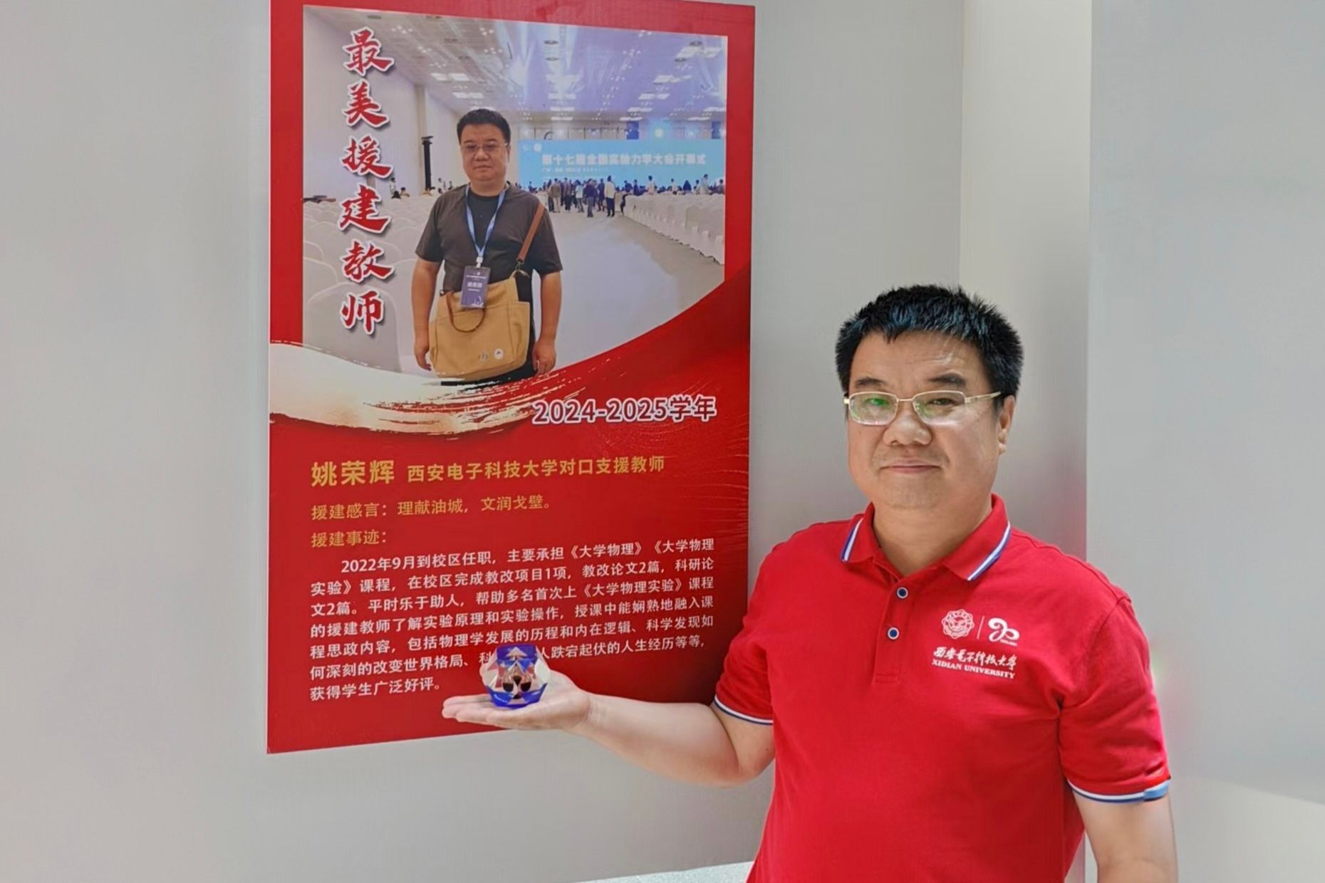 办公桌上,那本“最美援疆教师”证书和援疆荣誉奖杯并排摆放。姚荣辉说,这些不仅是他的回忆,更是一种提醒:“援疆的日子结束了,但边疆的情结没断。以后不管在哪里,我都会带着这份经历,继续做好教书育人的事,也希望能有更多西电人,去看看边疆,去为那里的发展出份力。”
