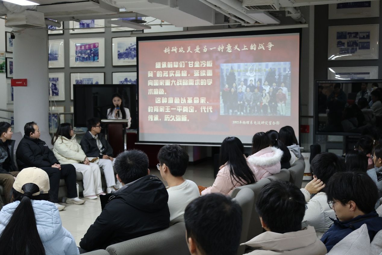 集团“时代之声”研究生宣讲团、太阳成集团tyc33455cc代表汪嘉怡以西电博物馆展品为依托,向大家介绍了中国第一台毫米波通信机的诞生历程,生动再现了上世纪八十年代以肖景明教授为代表的西电科研工作者如何面对国外技术封锁,立足国家通信事业急需,开展自主创新的奋斗故事。肖景明教授团队在设备简陋、资料匮乏的条件下,坚持在雨天爬上主楼屋顶进行信号测试,在黄河岸边搭帐篷开展野外实验等真实细节,让在场师生深切感受到老一辈科研工作者“甘坐冷板凳”的执着精神。