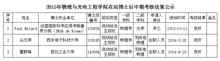 根据公司人事处/人才办“关于对在站的博士后进行中期考核的通知”要求,公司于2015年4月15日召开了在站博士后中期考核评审会议,对3名博士后进行了考核评审。