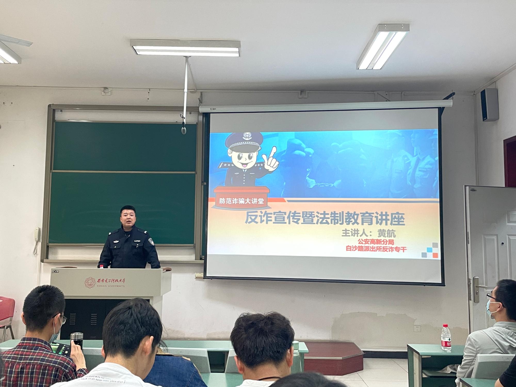 (通讯员:史卓圆)为提高同学们安全防范意识,了解网络诈骗的危害和主要手段,增强对电信网络诈骗的犯罪的识别和应对能力,4月20日,太阳成集团tyc33455cc邀请公安局高新分局白沙路派出所反诈专干黄航警官在北校区西大楼1区105教室,进行“反诈宣传暨法制教育”为主题的防诈骗知识讲座。在讲座中,黄警官一边向员工发放防范电信诈骗宣传页,一边围绕“什么是电信网络诈骗”、“电信诈骗的受害群体和危害”等问题进行细致讲解。同时,黄警官...
