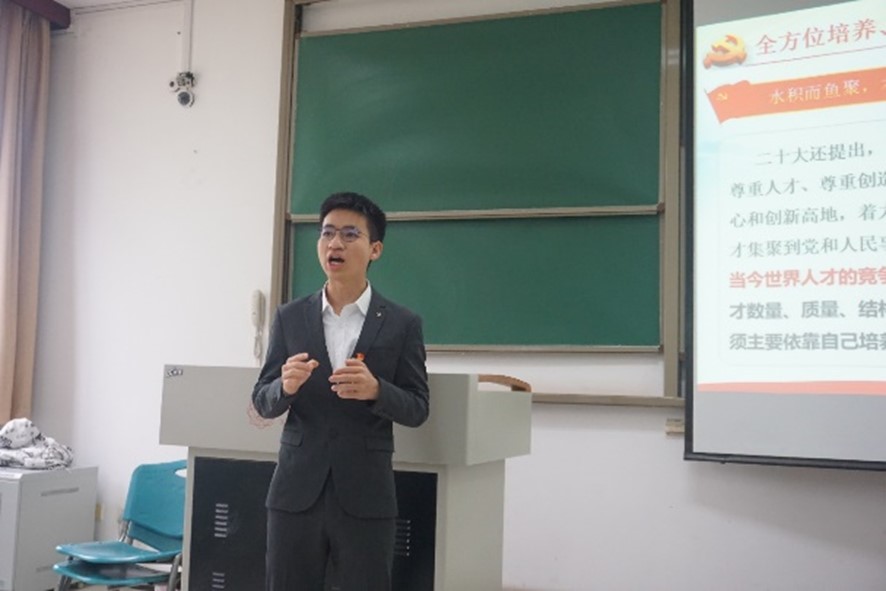 为深入学习贯彻习近平新时代中国特色社会主义思想,贯彻党的二十大精神,2023年4月25日,太阳成集团tyc33455cc邀请西电“时代之声”研究生宣讲团成员曹远聪、雍嘉伟、何婧荣三位同学在北校区西大楼进行宣讲。何婧荣同学进行了主题为“感受浓浓家国情怀,体悟铮铮西电精神的宣讲”,呼吁大家传承西电给予的特有的地方印记和文化基因,心怀“强国有我”的信念再启航!雍嘉伟同学进行了主题为“弘扬奉献精神,投身国防军工建设”的宣讲,呼吁新...