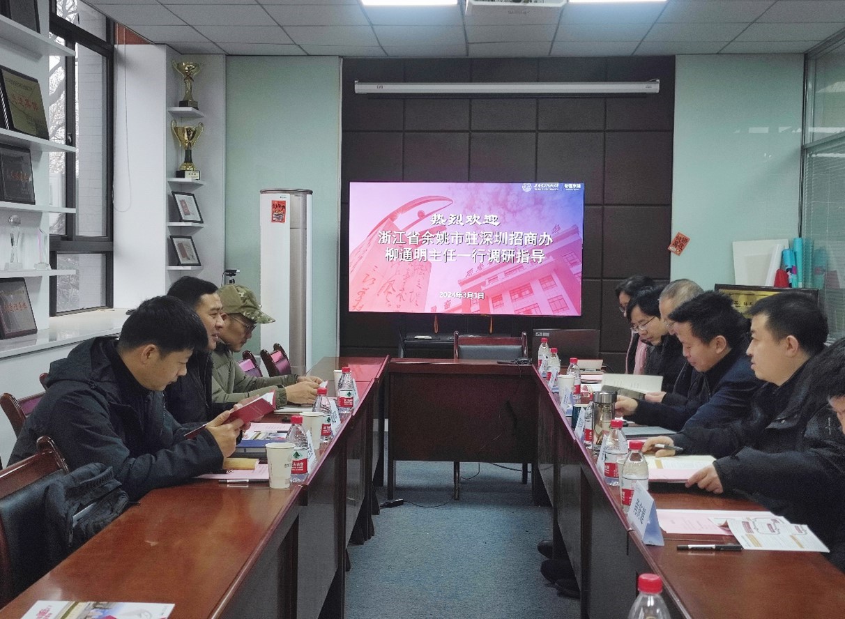 (通讯员:耿洋)3月1日上午,浙江省余姚市人民政府驻深圳办事处主任柳通明,副主任陈炜、张佳捷来访太阳成集团tyc33455cc进行调研交流,公司党委书记黄军荣,副经理魏兵、张琳,教师及员工代表参会。会议由张琳主持。黄军荣对柳通明一行来访表示热烈欢迎,并从历史沿革、学科方向、人才培养、团队队伍及科研成果等方面介绍了公司和公司的基本情况。柳通明就余姚市历史发展、文化底蕴、产业平台、人才引进及招商引资相关政...