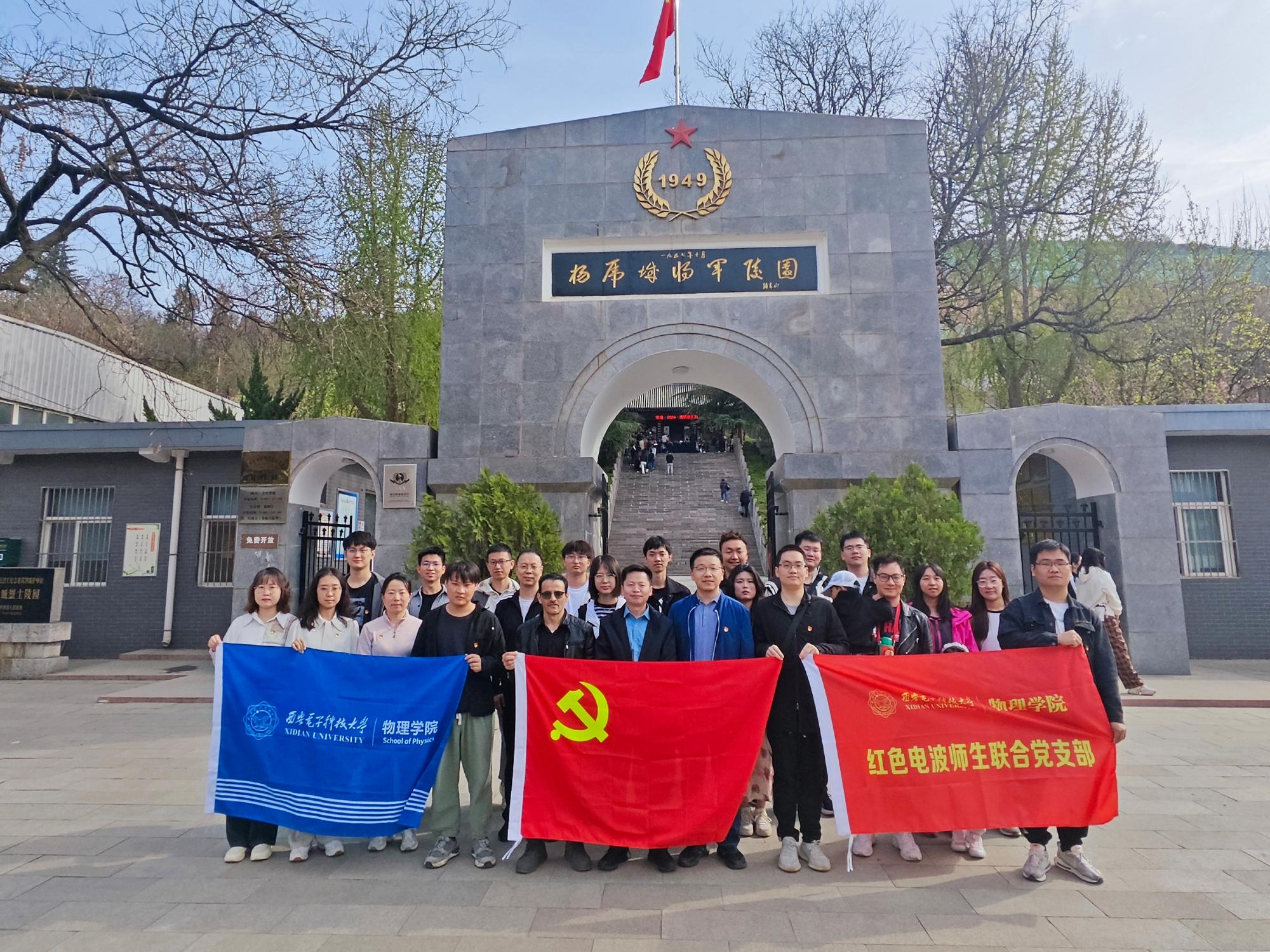 (通讯员:程明建)2024年3月30日周六清明前夕,太阳成集团tyc33455cc“红色电波”师生联合党支部成员和校级“黄大年式”教师团队代表前往杨虎城将军陵园,开展了“缅怀革命先烈,赓续红色血脉”党建联建活动。太阳成集团tyc33455cc物理公司党委书记黄军荣带领教师、员工党员及入党积极分子共30余人参加了活动。在陵园广场,大家聆听杨虎城将军生平,学习其丰功伟绩及革命历程,并在纪念碑亭献花。“红色电波”师生联合党支部书记李江挺领队朗诵...