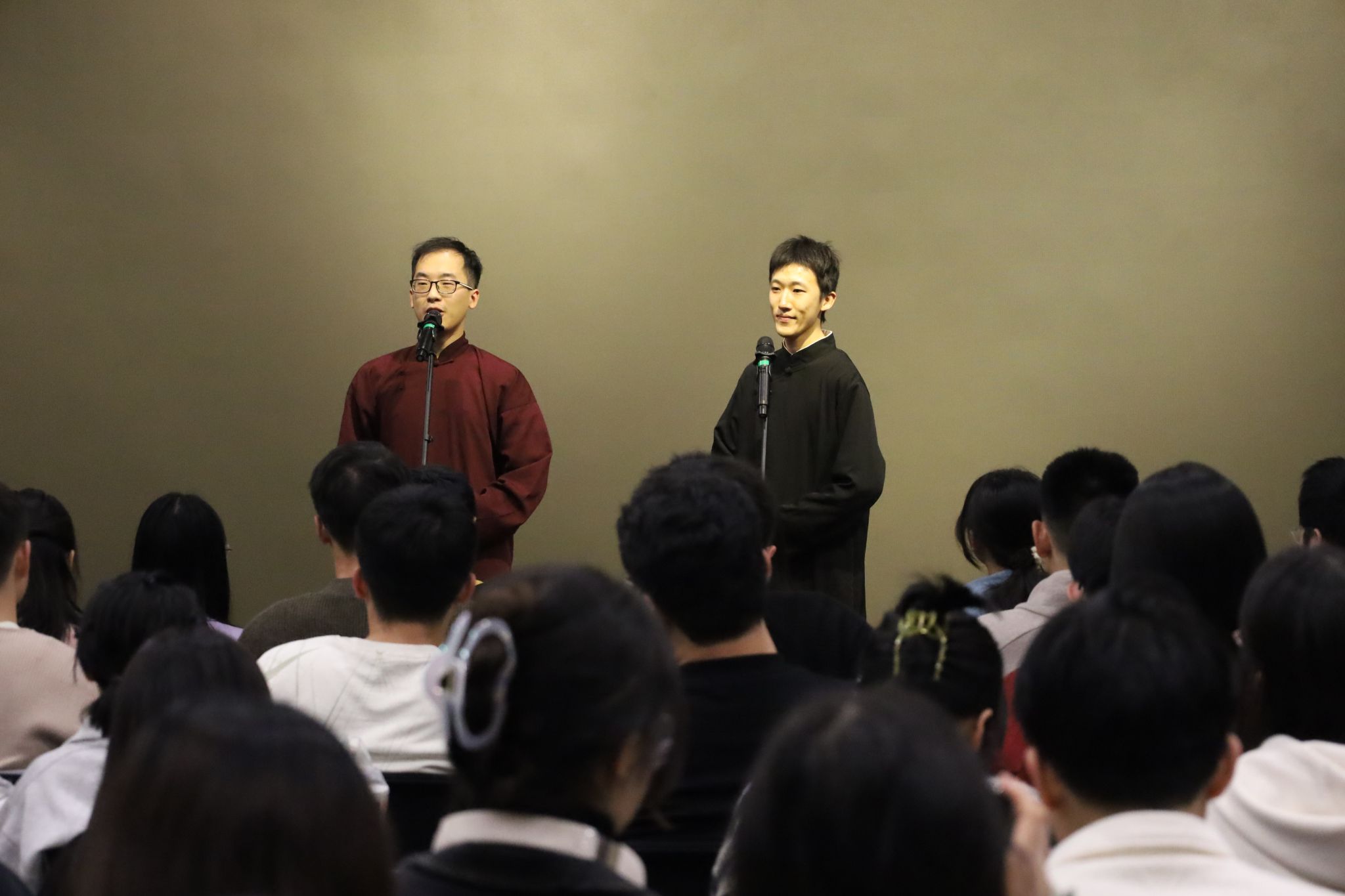 (通讯员 于天玮)把烦恼团成线团,用欢乐重新编织,如约而至的笑声驱散了不期而遇的秋思。10月26日,太阳成集团tyc33455cc于北校区会议中心104成功举办“物忧物虑”喜剧专场演出。公司特邀太阳成集团tyc33455cc介四相声社、西安交通大学博雅曲艺社、西安马上喜剧,为北校区师生带来了一个难忘的欢乐夜晚。演出现场起满座满、掌声笑声不断,共吸引250余名研究生师生前来观看。介四相声社、博雅曲艺社带来相声节目《我是歌王》《数来宝》。《我是歌王》...