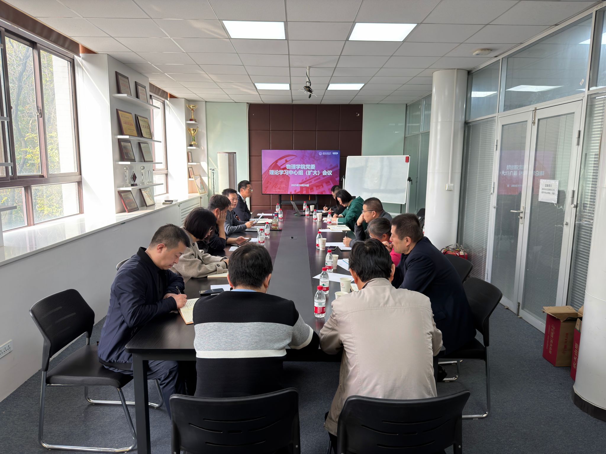 (通讯员:胡向涛)2025年10月30日,物理公司党委在西大楼三区四楼中厅会议室召开理论学习中心组(扩大)会议,专题学习党的二十届四中全会精神。公司党委委员、领导班子成员、教师党支部书记、系(所、中心)负责人等参加了学习。会议由公司党委书记黄军荣主持。会议集体学习了《中国共产党第二十届中央委员会第四次全体会议公报》、《中共中央关于制定国民经济和社会发展第十五个五年规划的建议》及习近平总书记关于《中共中央关于制定国民经济和社会发展第十五个五年规划的建议》...