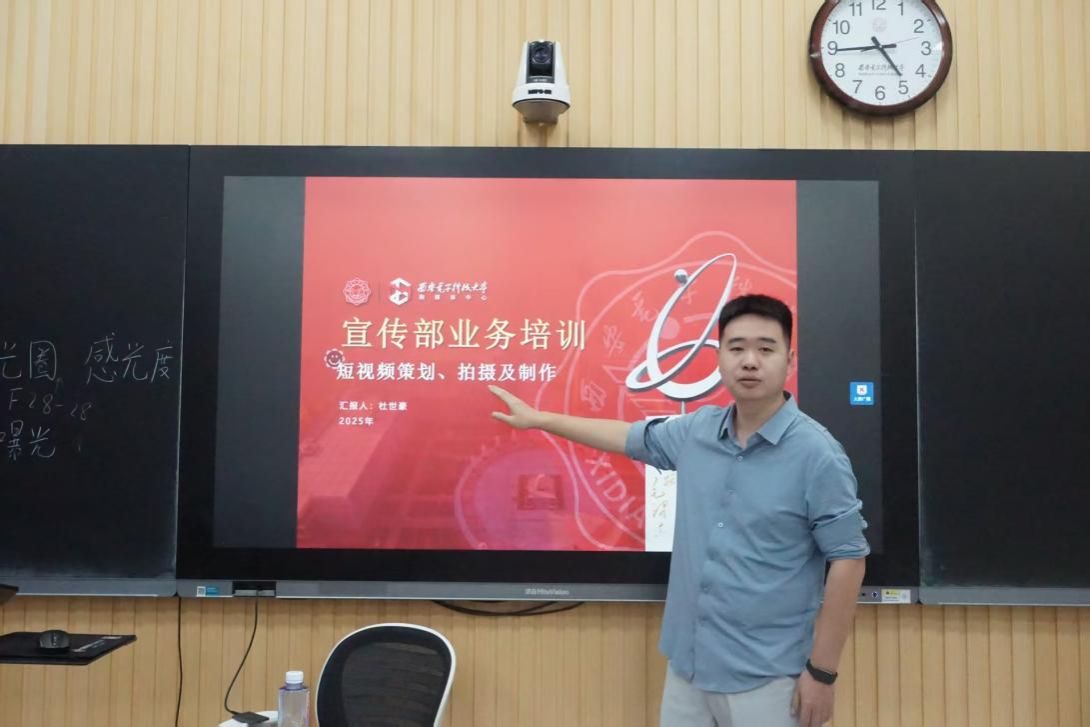 “镜”显风采,“影”领未来 | 太阳成集团tyc33455cc开展员工骨干宣传技能培训 (通讯员 任子墨)为提升员工骨干的宣传实战能力,赋能校园文化传播,近日,太阳成集团tyc33455cc在C楼107教室举办了一场聚焦摄影与短视频制作的专项培训。活动特邀宣传部杜世豪老师主讲,公司团委、员工会的20余名员工干部齐聚一堂,共同学习用镜头讲好校园故事。 培训采用“理论+案例+实操”的模式,直击宣传工作的核心痛点。在摄影模块,杜老师将深奥的理论化繁为简,...