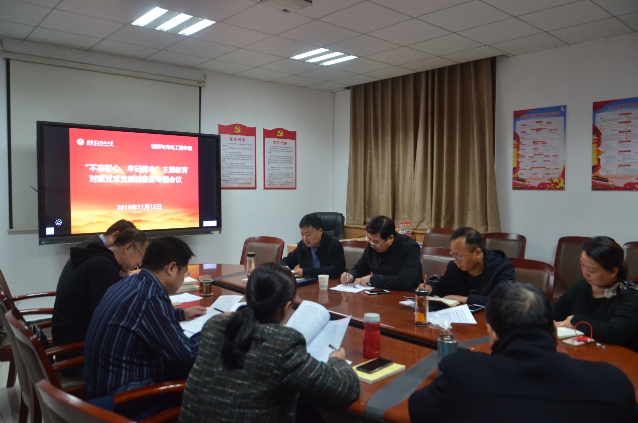 10月12日晚7点,物理与光电工程公司党委在北校区西大楼421会议室召开对照党章党规找差距专题会议,公司班子成员参加会议,校领导高新波、校指导组成员宁静到会指导。独国社汇报了公司班子认真准备问题检视,对照《中国共产党章程》、《关于新形势下党内政治生活的若干准则》、《中国共产党纪律处分条例》找差距工作开展情况,并代表班子对照党章党规“18个是否”逐一逐条进行检视说明。公司党员班子成员对照“18个是否”进行...